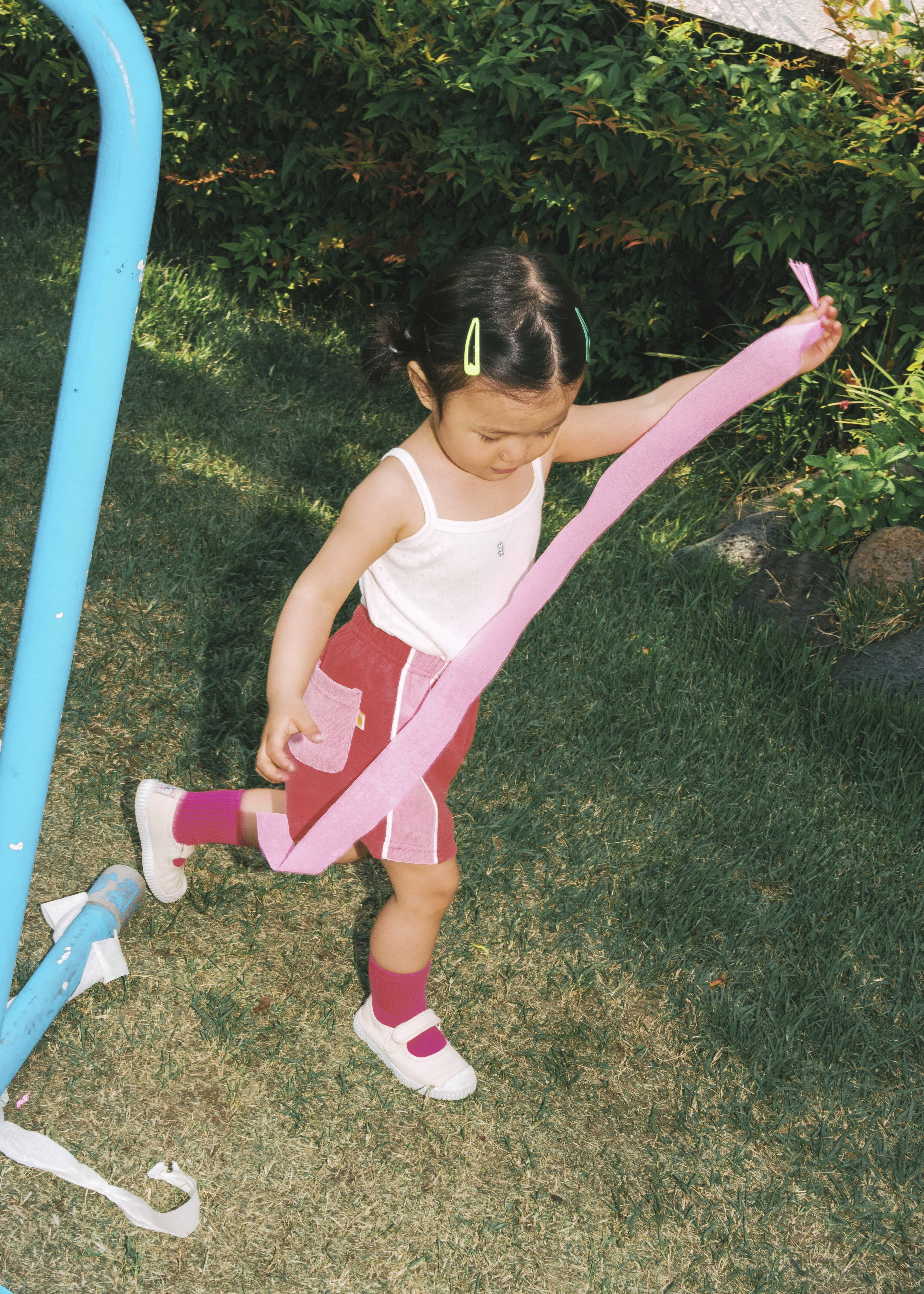 泰瑞拼色短褲 (珊瑚紅)