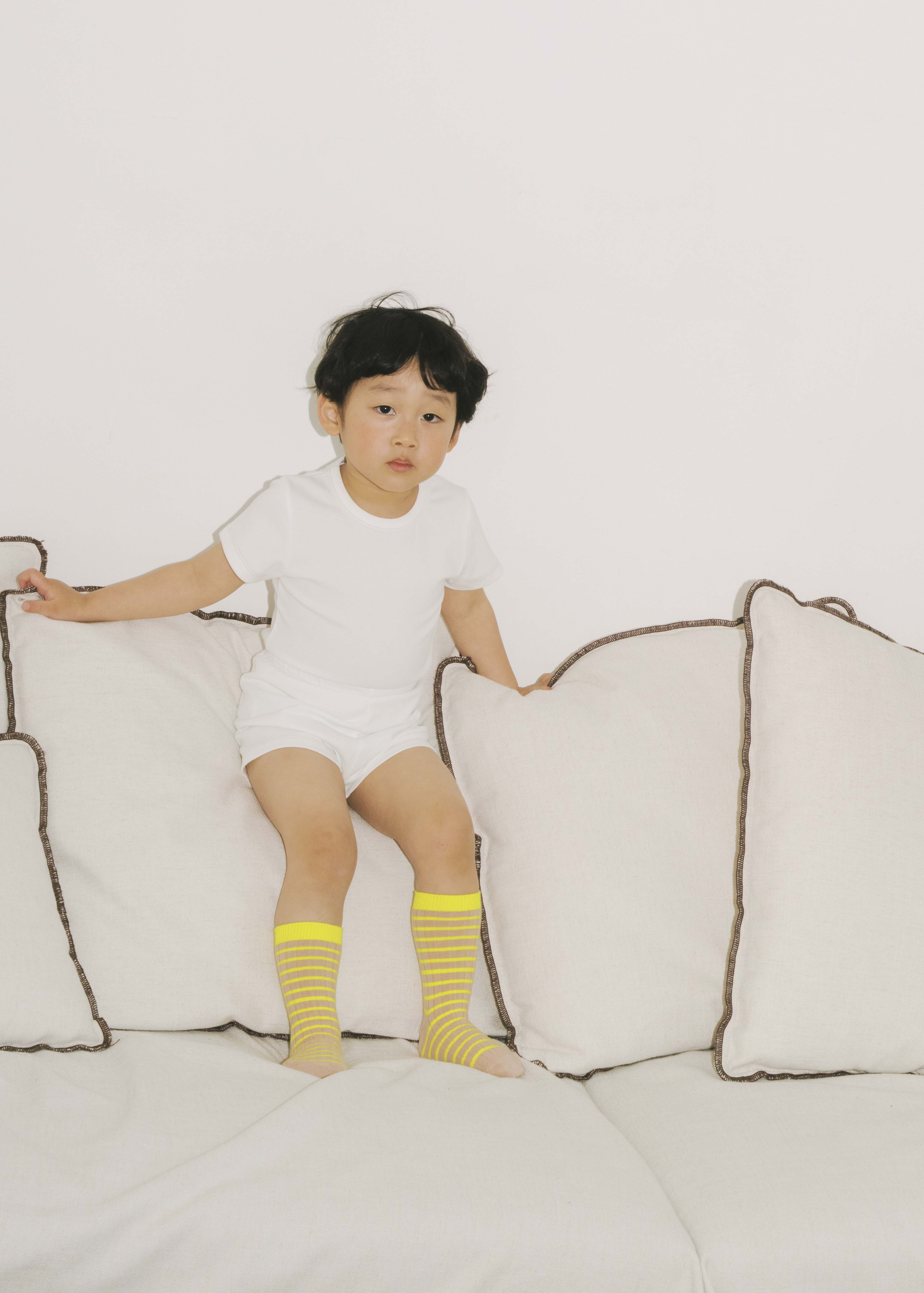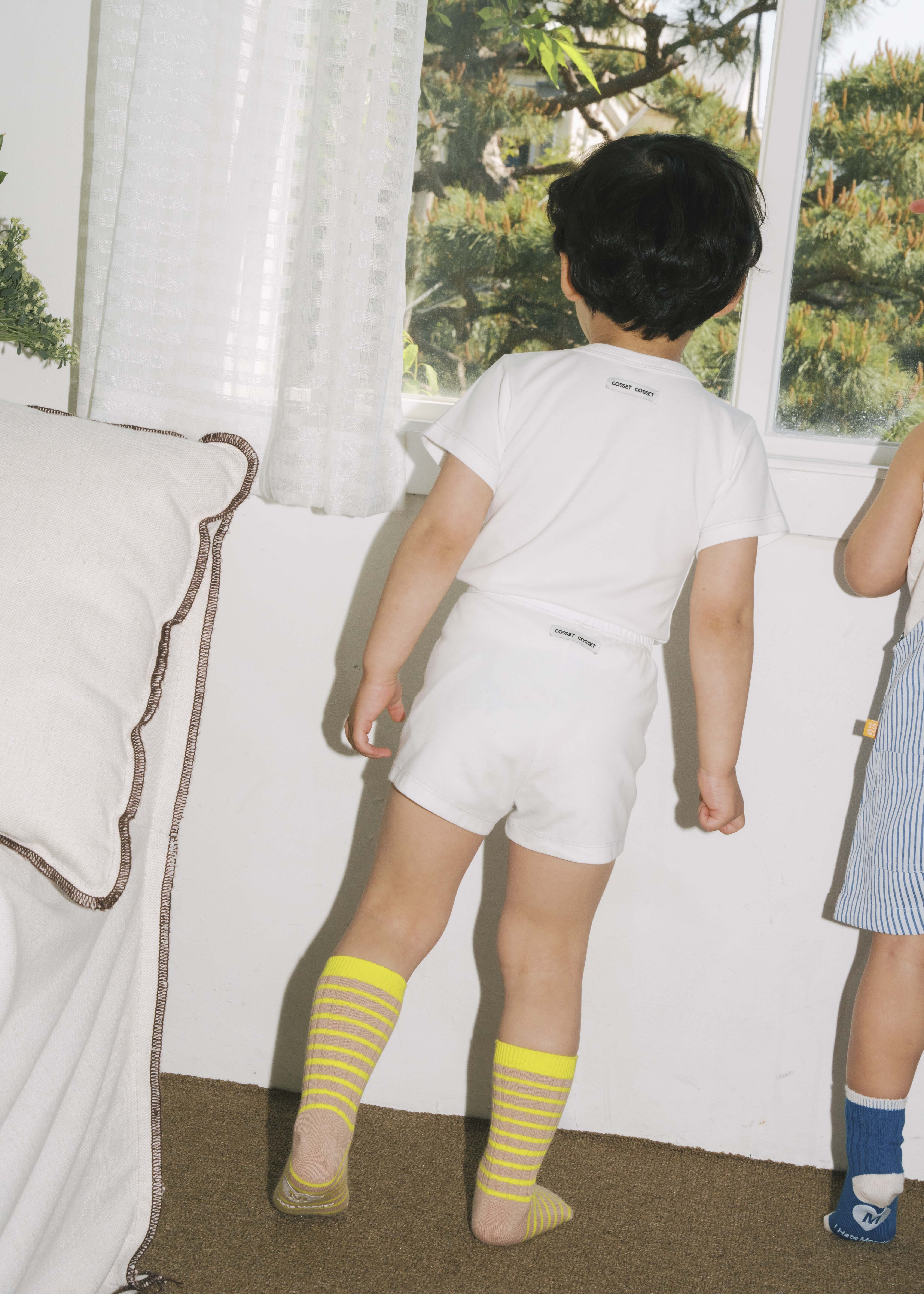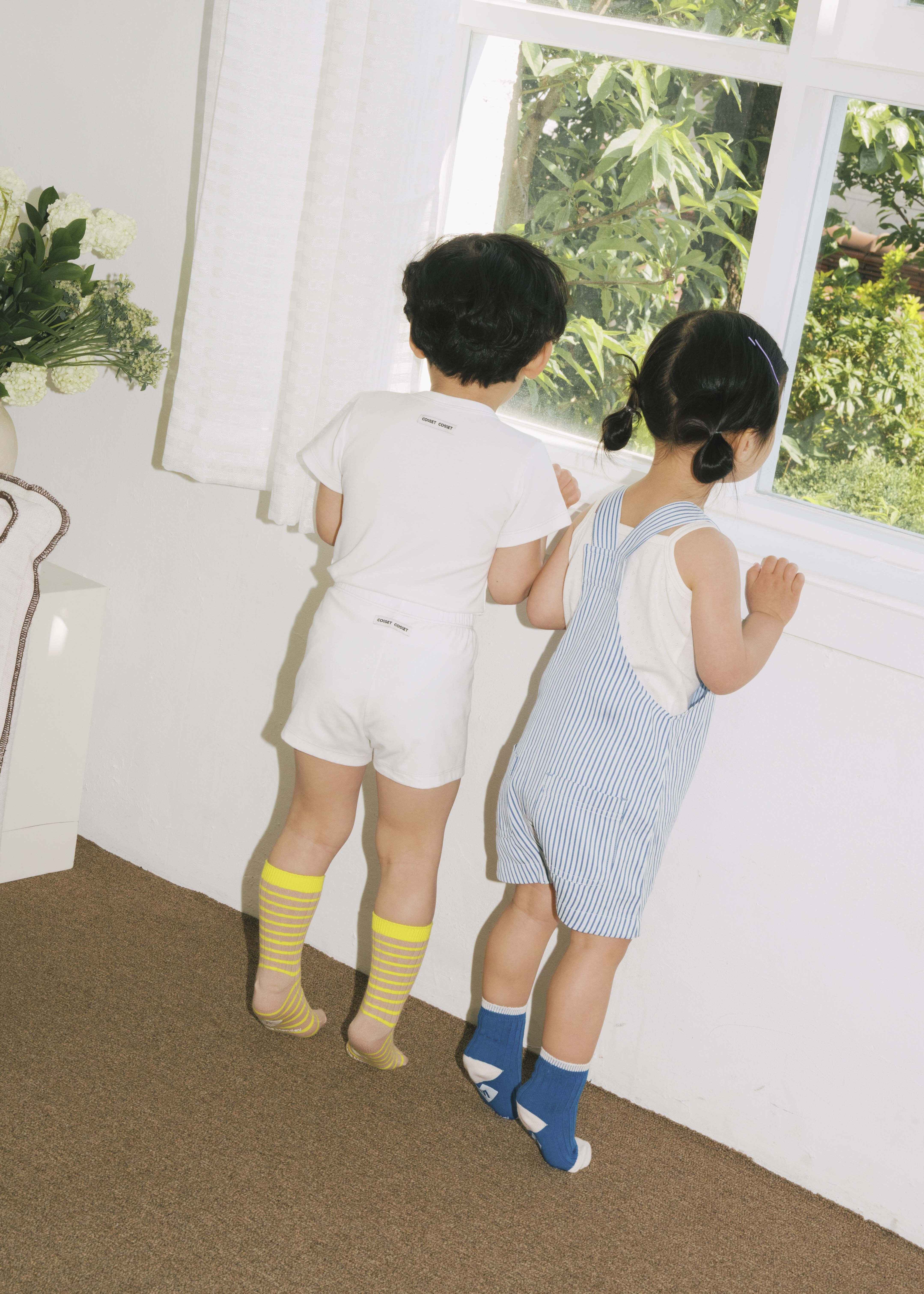 車線休閒上衣/短褲 (白色)